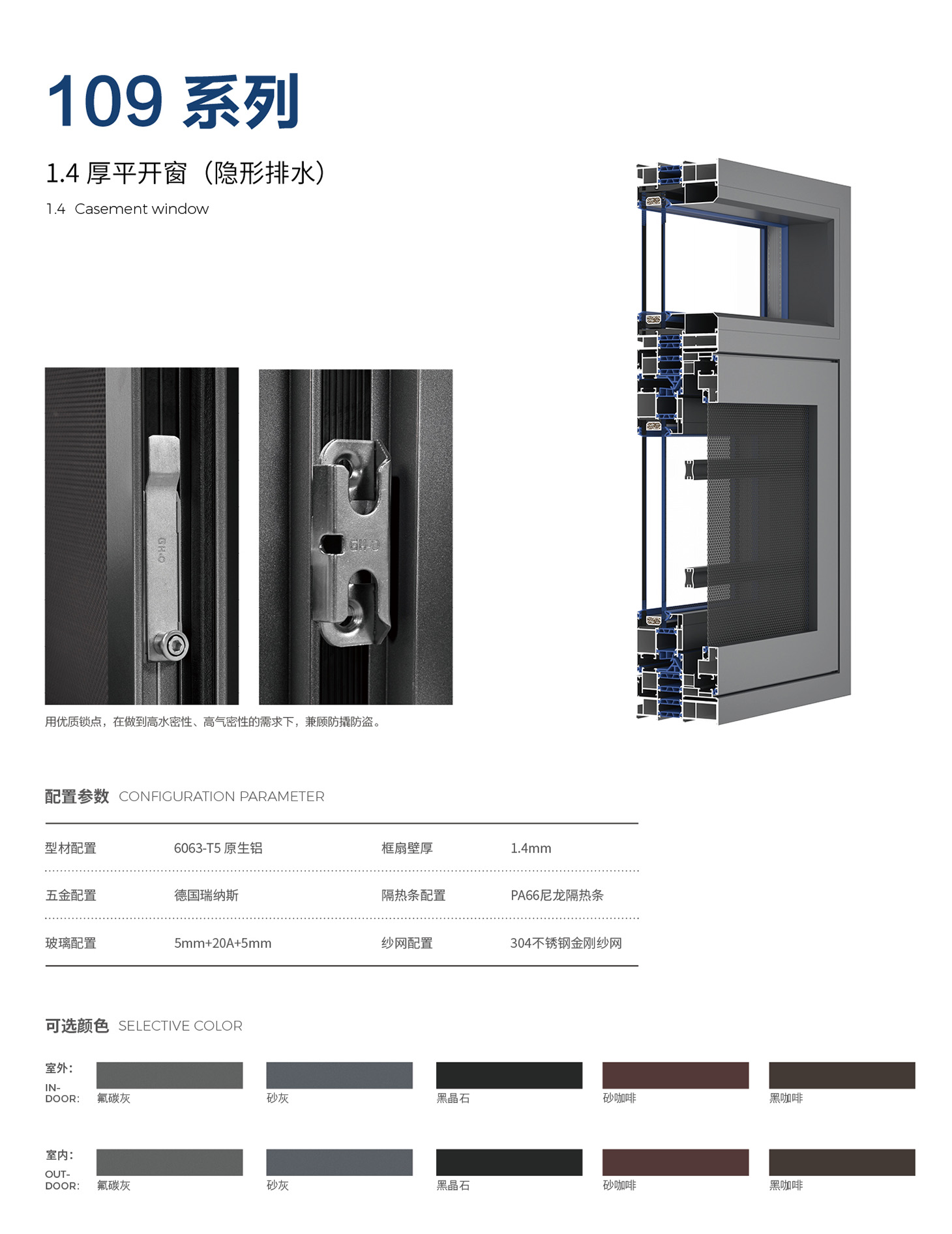 FGS-002(109系列 1.4厚平开窗(隐形排水))